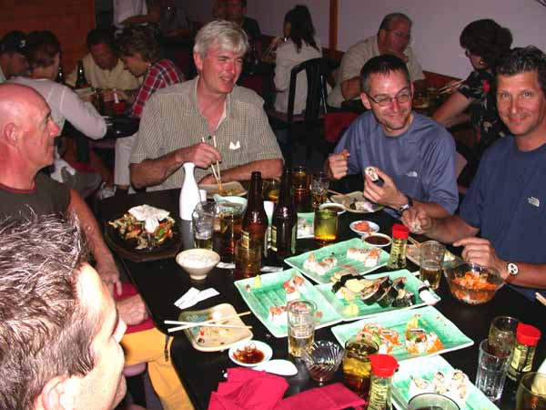 Notre ami François n'a pas eu de problèmes lors de notre dernier repas du voyage de faire l'essai des sushis avec les bonnes suggestions de Larry, pour Ti-Bob ne vous y trompez pas, même si il a le sourir sur la photo il n'a pas aimé le Japonais.....