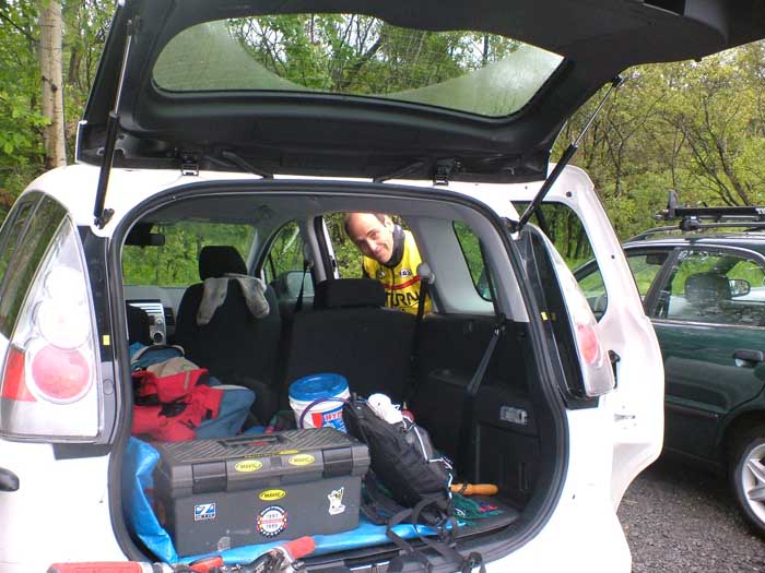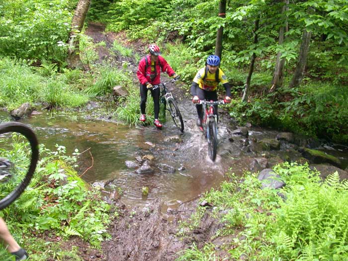 Jean-Guy qui passe le ruisseau sans problème